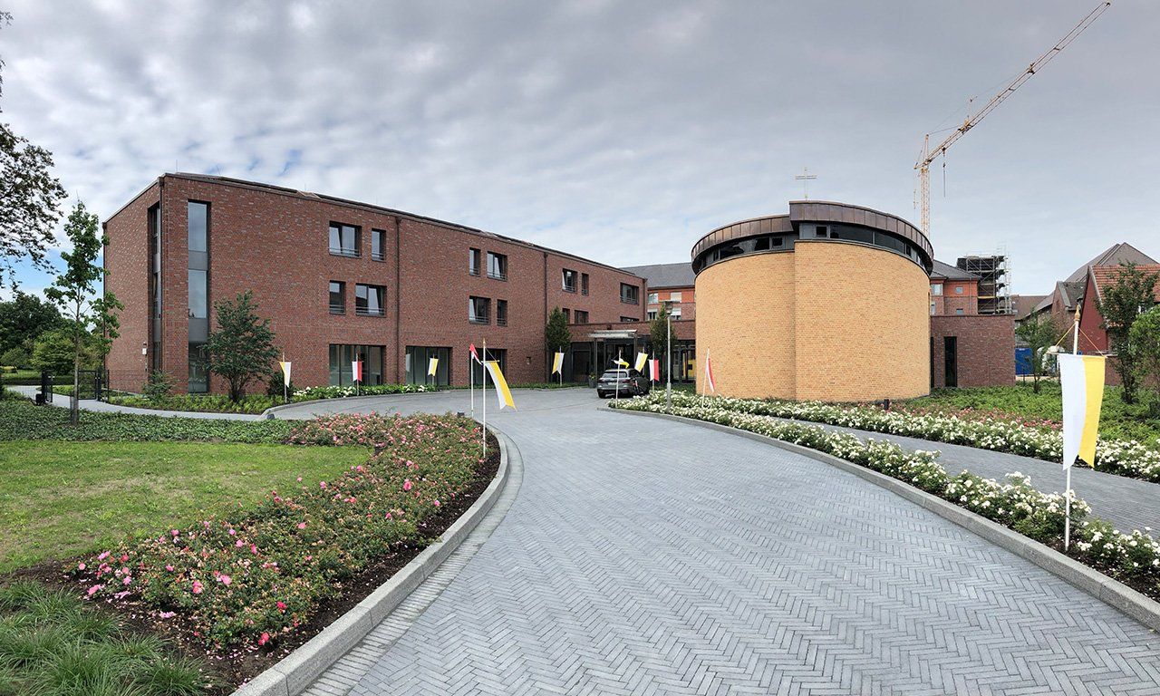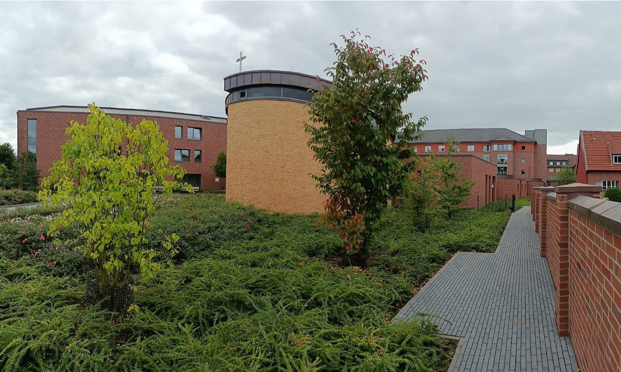 In interdisziplinärer Zusammenarbeit mit dem bischöflichen Generalvikariat, den Akustikern sowie dem Spiritual des Ordens und Planern kirchlicher liturgischer Räume wurde ein Ensemble aus Kapelle, Empfangsbereichen und einer Klausur für 12 Schwestern errichtet. Um auch Besucherinnen und Besucher empfangen zu können, beispielsweise für Exerzitien oder Meditationen, sind auch Gästebereiche, Konferenzräume und ein Raum der Stille berücksichtigt worden. Als viertes Element des Ensembles wurde der Verbindungsgang zum Mutterhaus mit Ausblicken in den Park möglichst offen gestaltet.